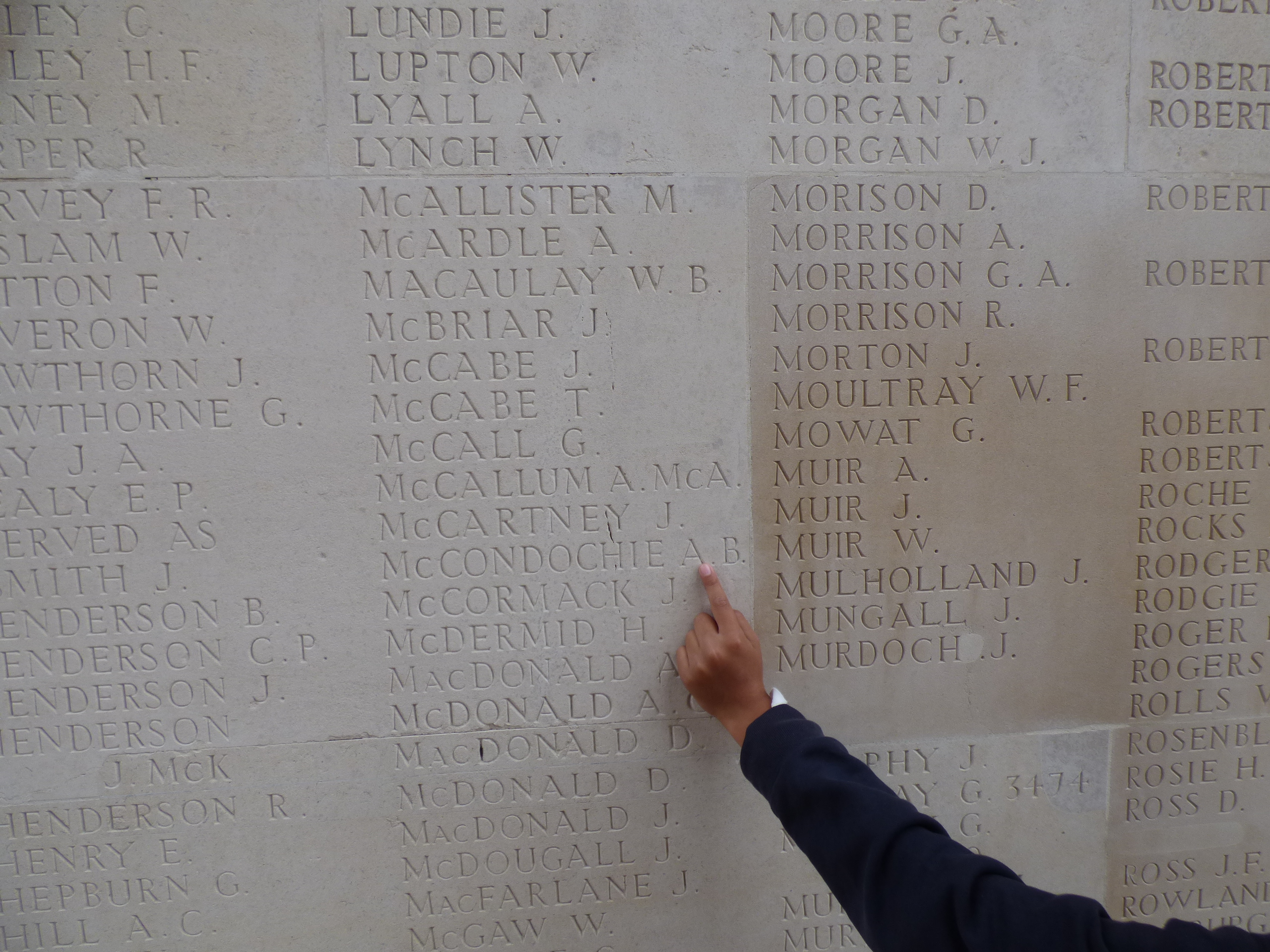Sadly, many lives lost were not fortunate enough to have a burial – a resting place. Their bodies lost, never found. Their memory, however, remembered. At the impressive Thiepval Memorial, ‘The Missing of the Somme’ are recognised. Here, 72,000 British names decorate the walls. Names of those lost. Here, we sat again, looking on at the cross, and remembered.