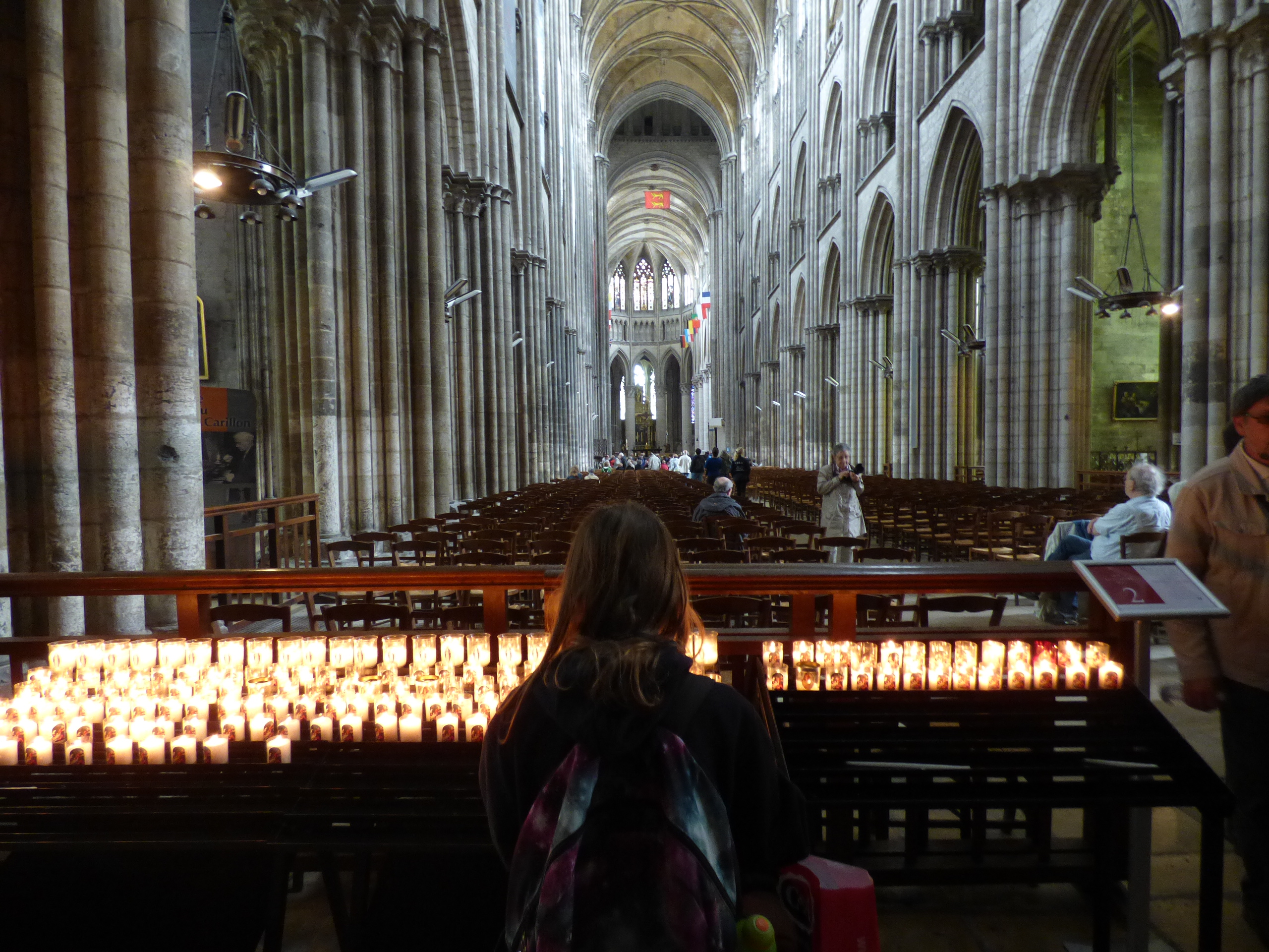 As impressive as the more famous Notre Dame of Paris, Rouen’s cathedral towers over the city with its 151 metre high spire believed to bring those who built it, and worship there, closer to God. Just looking at the outside of the building and its many stages of construction was mind-boggling to consider the architectural triumph standing in front of us. Inside, the wonder continued. Beautifully designed stain glass windows and statues of the patron saints were just two marvels to behold.